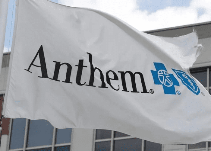 A white flag with the Anthem logo fluttering outdoors.