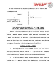 ← Grabar Law Office Files Complaint Pursuant to 8 Del. C. § 220 to Compel Inspection of Books and Records of World Wrestling Entertainment, Inc.