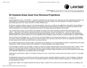 3D Systems Brass Sued Over Revenue Projections – Law360
