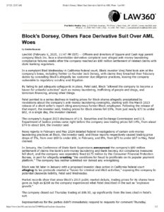 Block’s Dorsey, Others Face Derivative Suit Over AML Woes – Law360