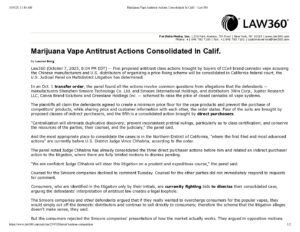 Marijuana Vape Antitrust Actions Consolidated In Calif. – Law360