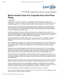 Micron Investor Sues For Corporate Docs Over Price-Fixing – Law360
