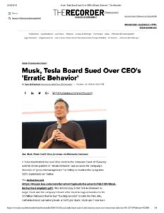Musk, Tesla Board Sued Over CEO’s ‘Erratic Behavior’ _ The Recorder