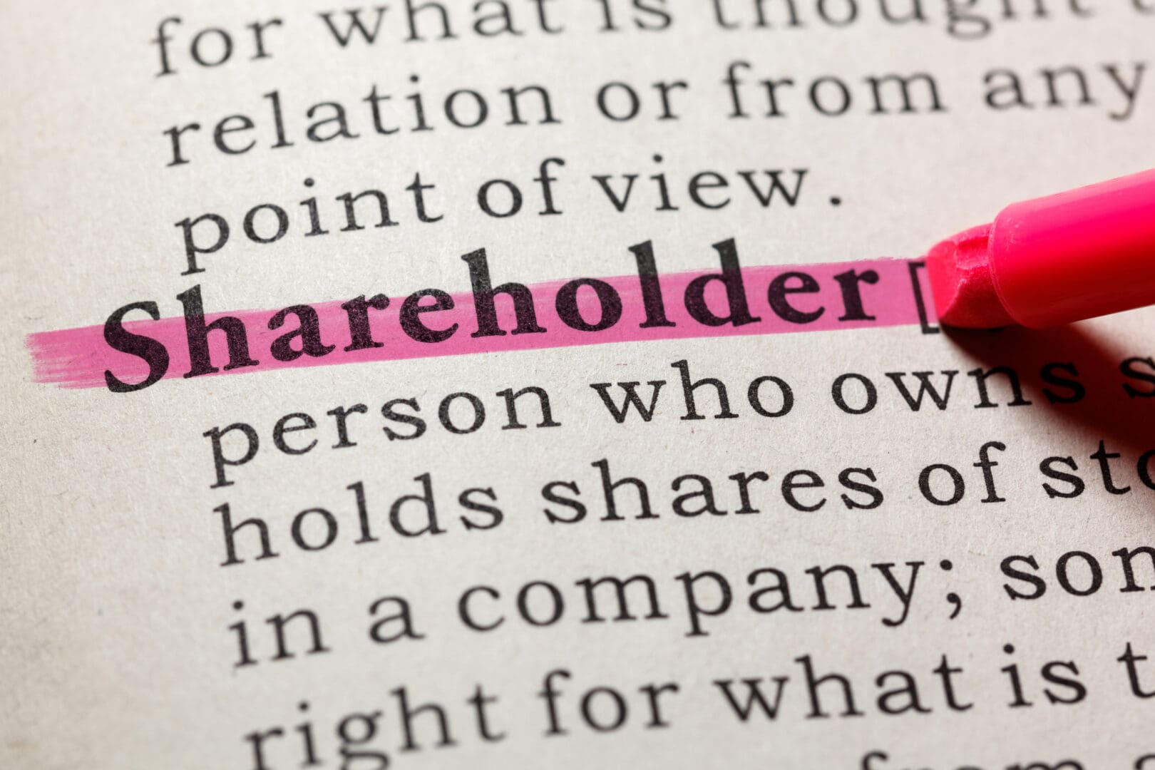 Highlighted word ‘shareholder’ in a dictionary.